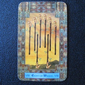 The Eight indicates sudden progress that is possibly too fast for comfort, so try to slow things down a little and avoid over-hasty decisions that you might later regret. This is an exciting and well-starred time with travel, new business partnerships, and long-term romance all likely - just bear in mind that life is not always this easy, and plan for those rainy days.